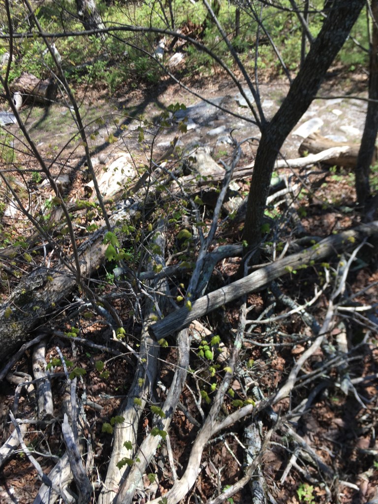 The entrance to Cheaha State Park has been transformed to accommodate THE VIRUS. The gate attendant wore gloves and a mask and was hiding behind a plastic shield, which she reached underneath to grab our $2 each and issue us a pass for the car. It was Easter Saturday, and a lot of other cabin-fever-afflicted people had chosen the same destination we had, but they kept their distance, even when passing on the boardwalk through the woods.