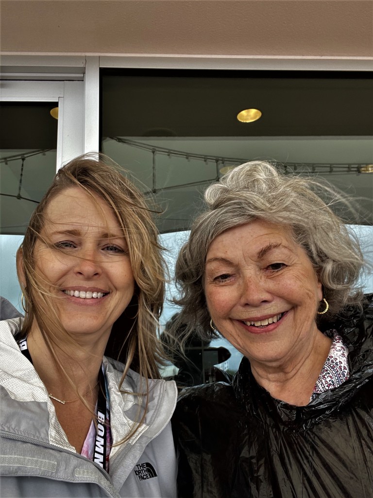 Fortunately, Meredith and I didn’t watch this race from dripping, open-air grandstand seats or muddy RV porches in the infield, though both of us have done that more than once through the years. When we reached the spectator parking lot, we used umbrellas like shields to navigate torrents of rain and strong wind gusts until we located the VIP entrance and elevator to the sponsor’s third floor suite—quite the digs for a truck race. Open bar, Mexican buffet, mounted TV screens, comfortable indoor chairs, and a large canopy over several rows of outdoor seats. We were even supplied with noise-canceling headphones, very useful when we ventured outside to watch the cars roar by—and I do mean ROAR—below us. My son wasn’t seeking “front row competitive” status at COTA, but he enjoyed the thrill of the track and the atmosphere. With his truck repaired overnight, he ran the race without further mechanical issues.