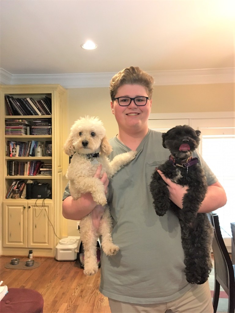Much as she loves to hop in the car and go along, I knew I couldn’t take Gracie with me on this almost month-long adventure. She’s never stayed in a kennel, but my wonderful grandson Robbie agreed to take care of her, along with his own schnoodle Cooper, and I agreed to supply this 16-year-old with welcome gas money comparable to what I’d have had to pay a kennel. Not only has he done a great job, he’s also been thoughtful enough to keep me posted with photos and videos along the way.