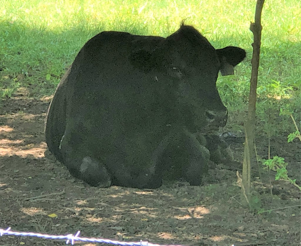 The drive back out to the highway was so peaceful, through rolling pastureland. We stopped for a short visit with a dwarf pony and several cows huddled in the shade behind barbed wire and noticed that the owner of this bucolic scene had a definite preference when it came to university loyality.