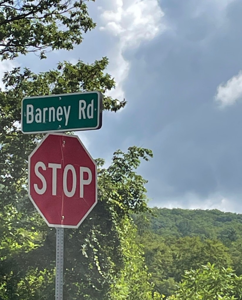 Our first stop of the day was one of those where you pass something, then realize what you just saw and make a u-turn. We were hardly out of NY state, but I had to stop and photograph this “sign”–a sweet reminder of all the fun road trips Barney and I had made to this part of the country over the years.