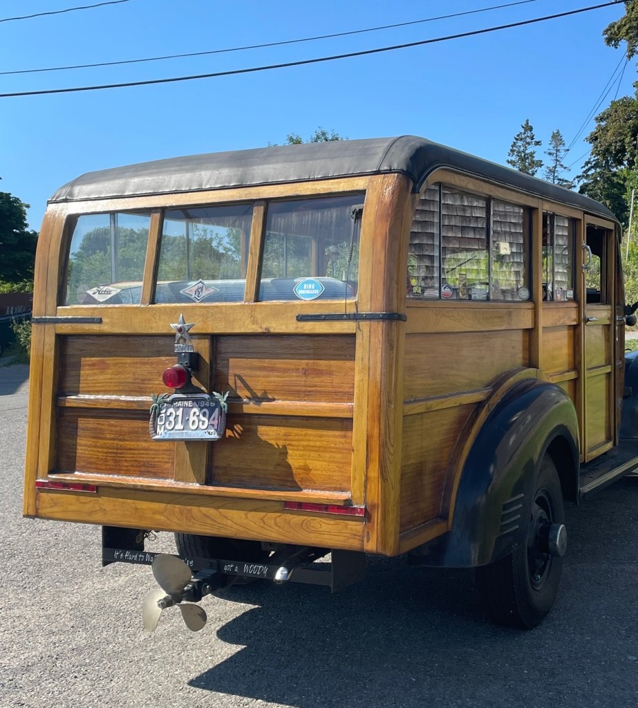 There was never a huge market for woodies, but for a while, mid-20th century, they were popular with upscale resorts as quaint “depot hacks” to transport guests to and from railroad stations. Woodies staged a brief comeback in the 1960s when the Beach Boys made them popular for ferrying surfboards (and girls) to the beach. This particular woodie, parked in front of the Quonset, was a lovingly refurbished 1947 Dodge model able to seat eleven passengers. At one time, it transported sardine packers to and from work at Eastport’s now abandoned cannery.