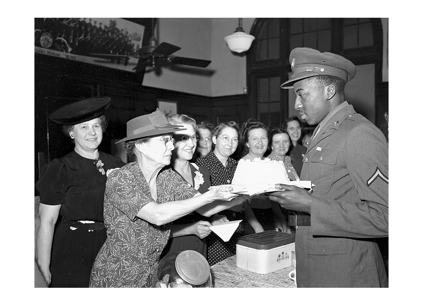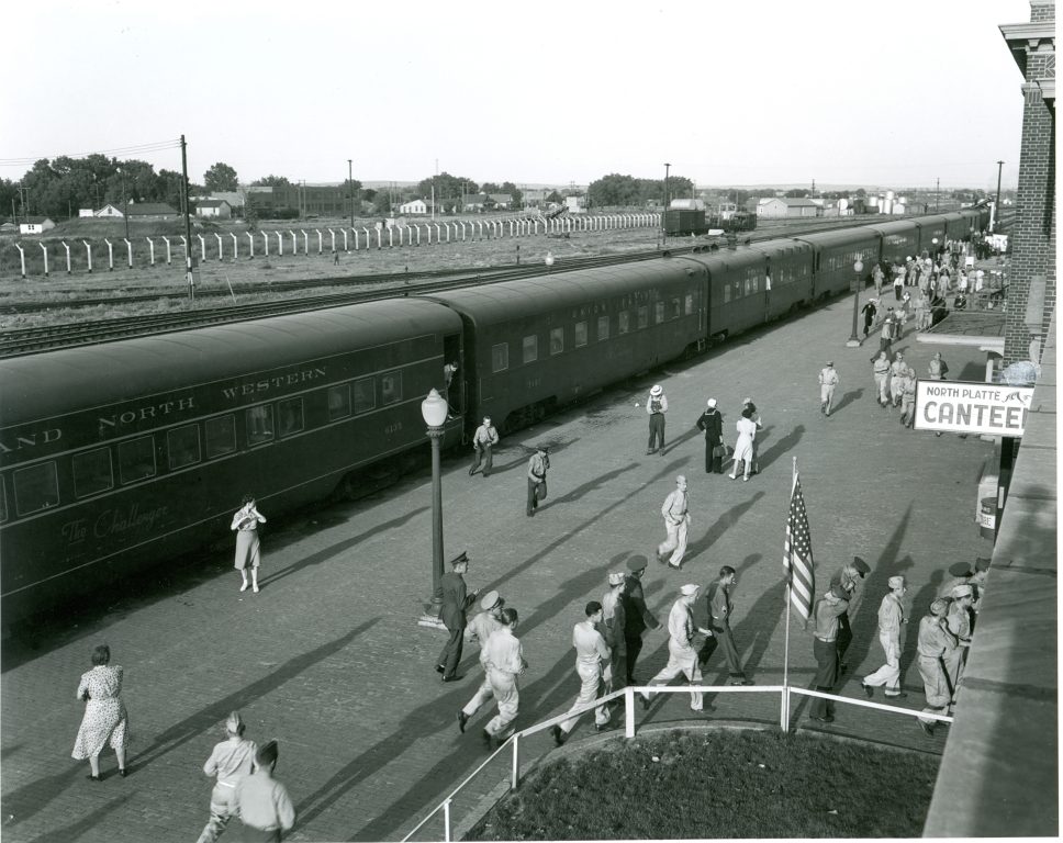 Troop trains stopped in North Platte because it was a designated “tender point” for steam trains. Railroad crews relubricated wheels, topped off water levels in the tanks, and performed other maintenance while soldiers enjoyed a respite from their long journey.